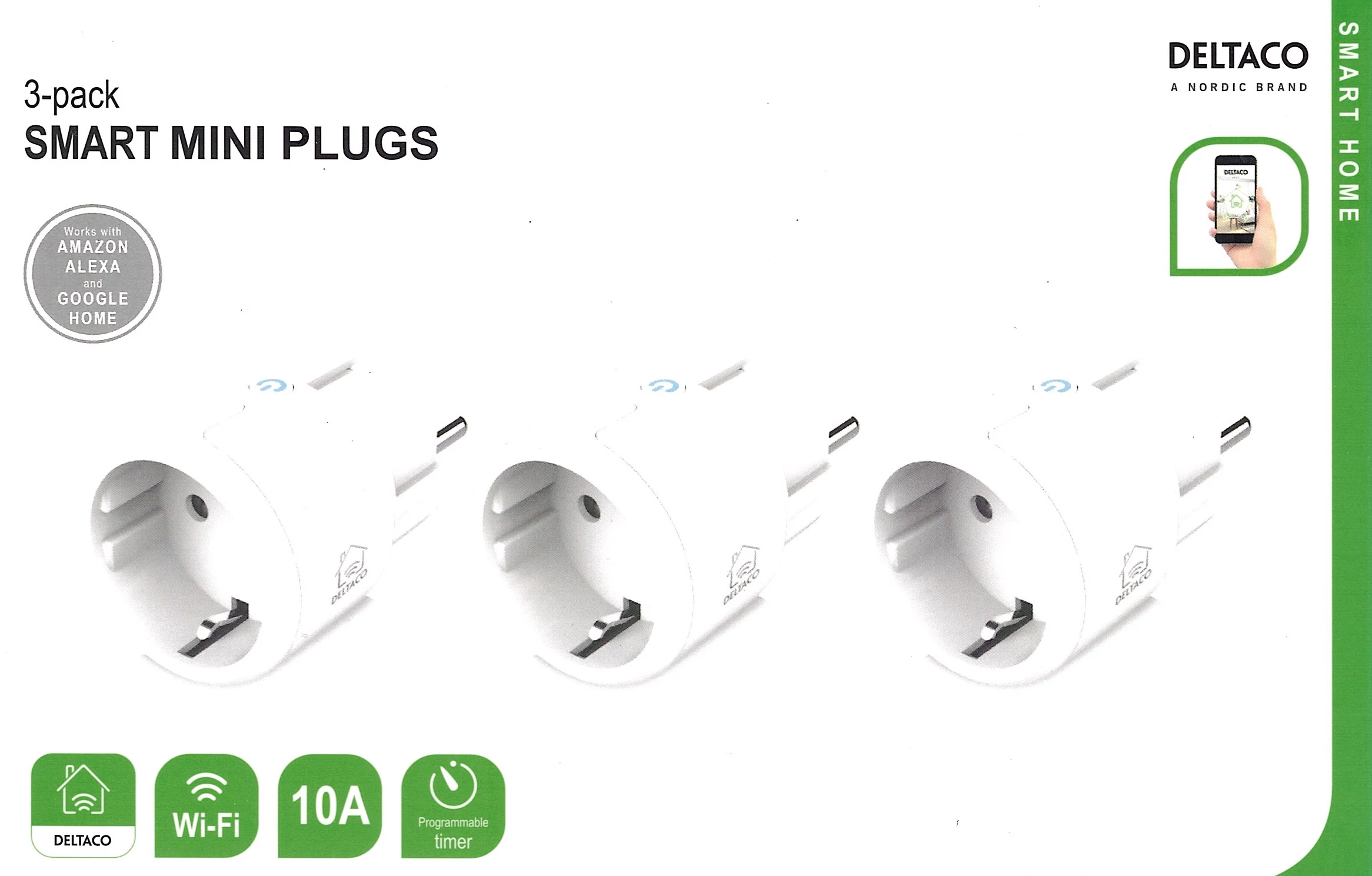 DELTACO SMART HOME SH-P01M-3P LED, beltéri konnektor, 10A, WIFI, 3db/csomag